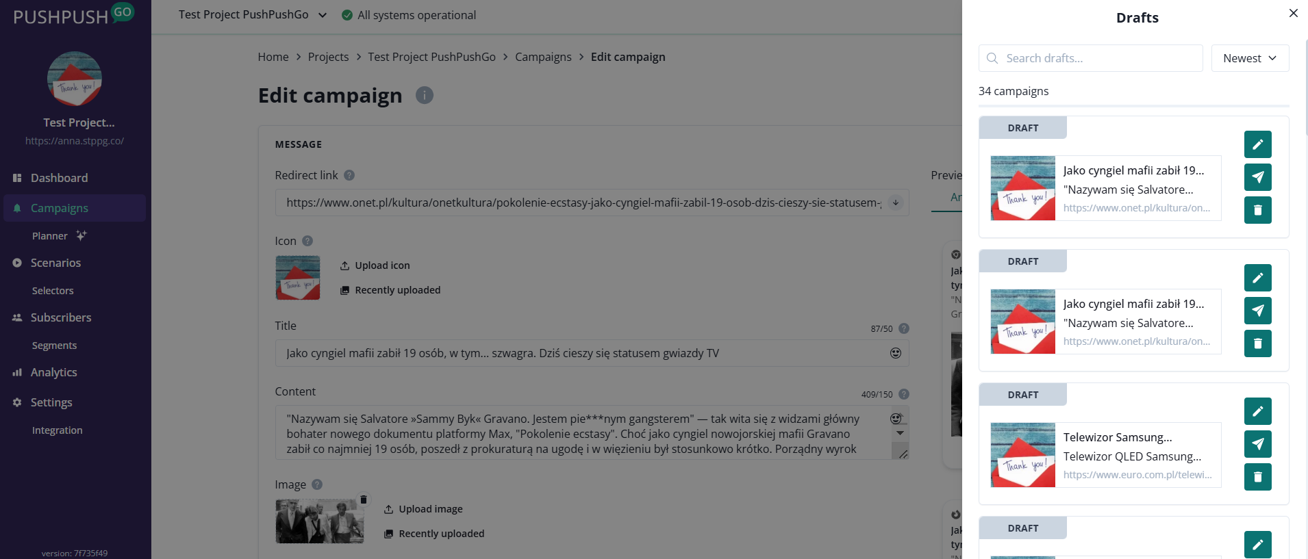 After clicking the button, a list of all saved drafts will appear on the right side.